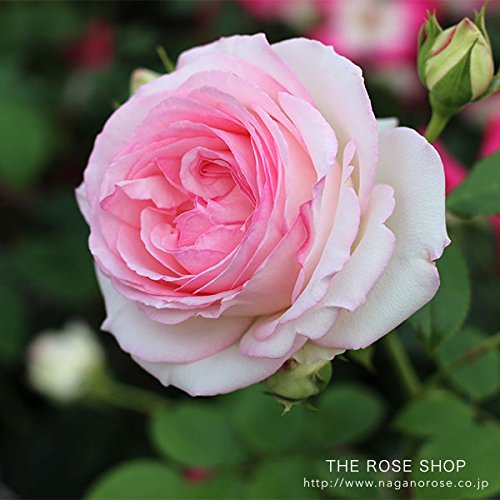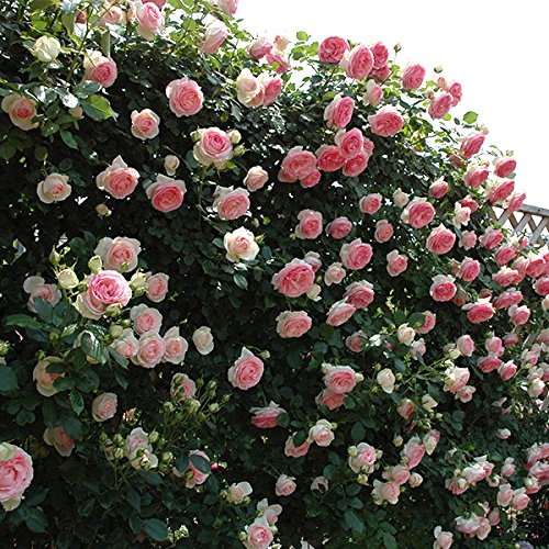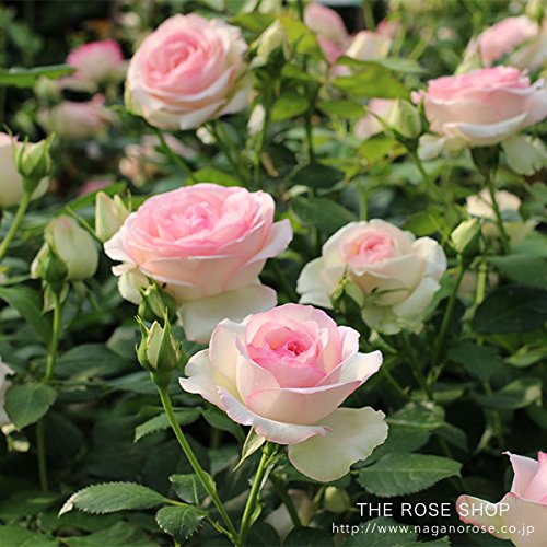 - 作出年:1987年。作出国:フランス。花弁色:縁を帯びた白で中心が淡いピンク。咲き方:返り咲き。芳香の強さ:微香。花形:カップ咲き。花弁数:50枚。花径:9~12cm。樹高:3m。樹形:つる性。