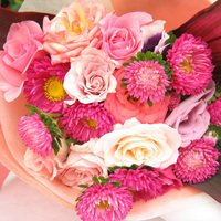 フレッシュなバラをカラフルなお色で20本集めてブーケをお作りします。ラッピングは和風タッチ。シックです。20本のバラはとっても豪華!感動も一緒にお届けします。メッセージもどうぞ。このままお祝いに!記念日に!お使いいただけます。