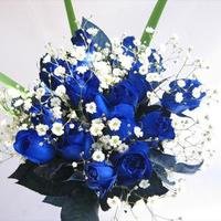 - こちらのバラは特殊な染料で白いバラを染め上げてあります。これまで不可能とされていた青いバラはきっと多くの方に感動と喜びを与えてくれるものと思います。青いバラの花言葉は「神の祝福」「奇跡」です。