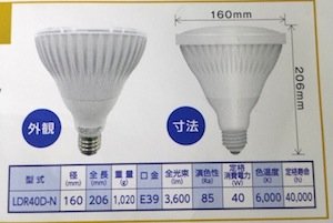シバタ LEDランプ のみ LED電球 のみ 投光器用 40W LRD40D-N