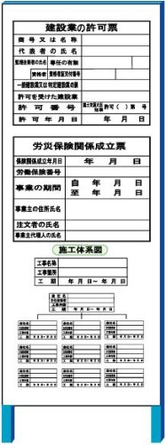 現場表示用法令看板 建設業許可・労災保険・施工体制図 3点セット 550×1400鉄枠付