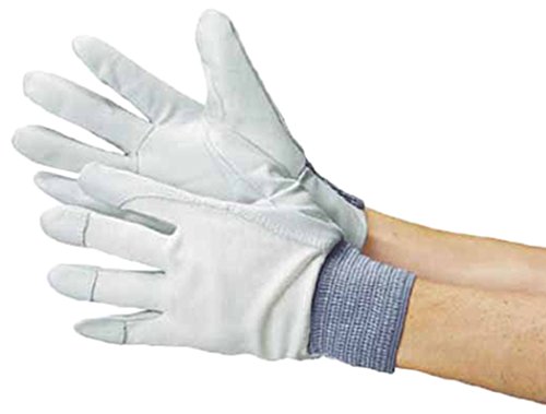 ●柔軟性に富み、丈夫でしなやか、手によく馴染みます。●甲部には通気性の良いメリヤス生地を使用しています。●サイズ:M●全長:22.5cm●手のひら周り:19.0cm●中指長さ:8.5cm●厚み:0.8mm●袖口:ゴムタック式●電工・建設・土木・鉄鋼・機械・荷役・運送・園芸・レジャー等。●掌部:牛本革●手甲部:メリヤス生地