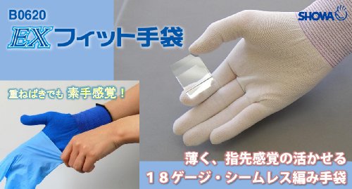 - 長繊維のウーリーナイロンを採用した、手袋自体からのホコリが発生しにくい低発塵性編み手袋。