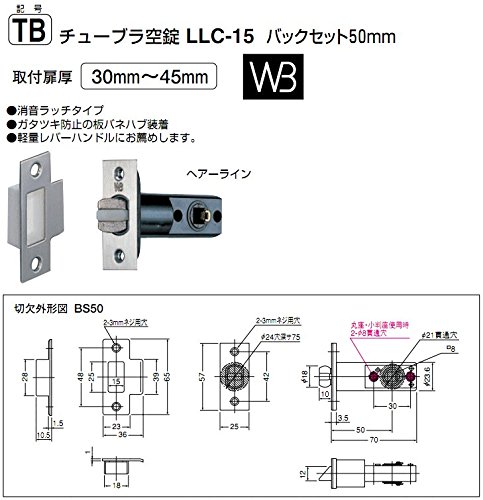 シロクマ 白熊印 レバーハンドルオプション チューブラ空錠 TB LLC-15 バックセット50mm