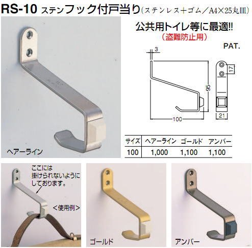 シロクマ 白熊印 ステンフック付戸当り 公共トイレに最適な RS-10 ドア戸当たり ゴールド