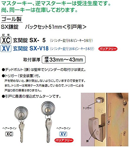 シロクマ 白熊印 引戸錠 ゴール GOAL 玄関錠 XC SX-V18 バックセット51mm ブラック