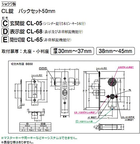 シロクマ 白熊印 レバーハンドルオプション SHOWA ショウワ製 CL錠 バックセット50mm 間仕切り錠 ブラック