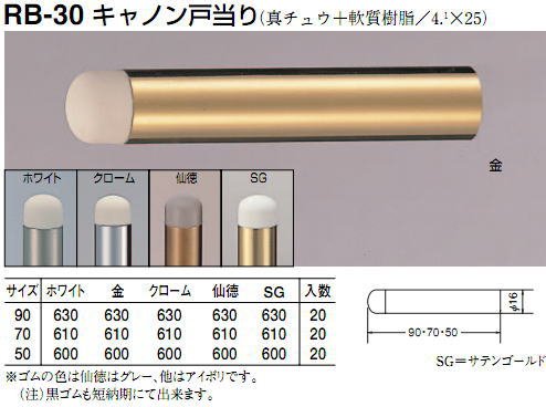 シロクマ 白熊印 キャノン戸当り 70mm RB-30 ドア戸当たり ホワイト