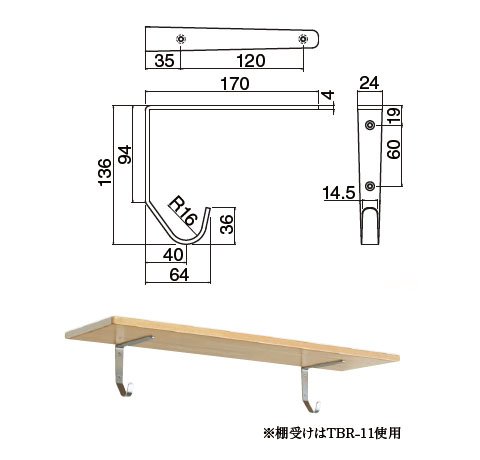 シロクマ J形フック付棚受け 136×170 ヘアーライン 1箱4個価格 ※メーカー取寄品 TBR-11