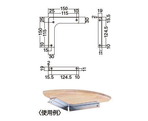 シロクマ コーナー棚受けV形 150×150 電解研磨 1箱6個価格 ※メーカー取寄品 TBR-30