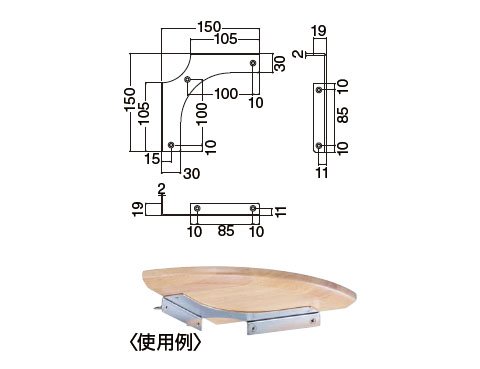 シロクマ コーナー棚受けW形 150×150 電解研磨 1箱6個価格 ※メーカー取寄品 TBR-31