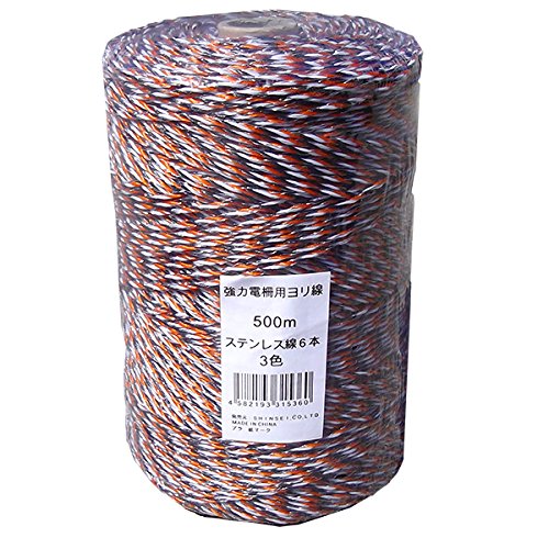 電柵用撚り線 【6線】ステンレス 500m 1巻 3色 より線 電気柵 ロープ