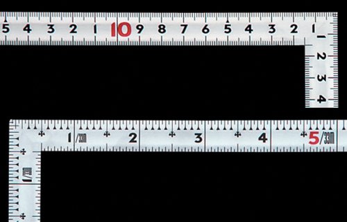 ●特長●角部は竿と同じ厚さです。●外側基点の内目盛が付いています。●仕様●角部形状 同厚●表目盛 長枝:外目盛 50cm 内目盛 45cm短枝:外目盛 25cm 内目盛 20cm●裏目盛 長枝:外目盛 尺5 内目盛 1尺・ホゾ短枝:外目盛 7.5寸 内目盛 7寸●本体サイズ 520(260)×15×1.4mm●製品質量 88g●直角度 100mmにつき0.1mm以下●長さの許容差 ±0.2mm●材質 ステンレス