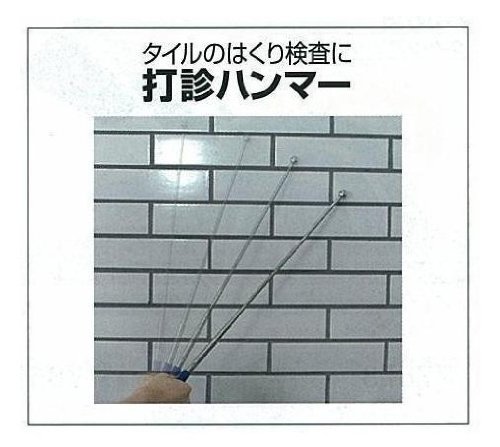 ●タイルの上を滑らせると、はく離箇所に音の違いが現れます。●ステンレスパイプを使用しております。●全長(mm)最短~最長:140~620●先端球体部(mm):φ17.5●タイルのはく離を探す工具。●アンテナ部:ステンレス●球体部:工具鋼●グリップ部:ゴム●ストラップ:ナイロン