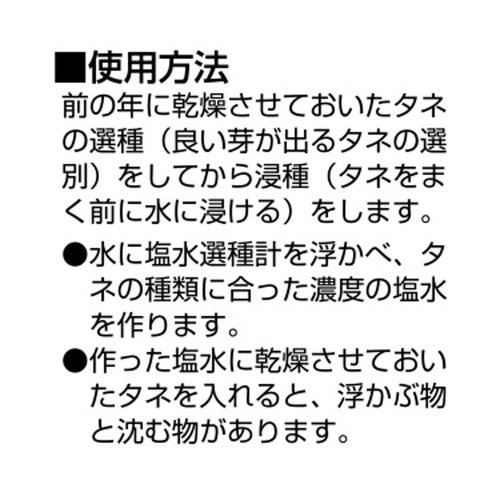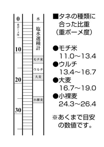 ●塩水の濃度を測定し、タネ・モミの選別に使用する為の比重計