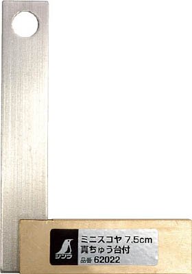 - ●竿長×台長(mm):75×48●幅(mm):13●台幅(mm):15●厚み(mm):1.5●台厚(mm):6●質量(g):45●竿部目盛なし●90°角度精度:0.07mm以下/45mm
