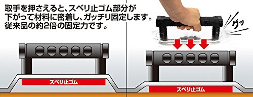 ●特長●ラクにスライド、ガッチリ固定できる、「スライド・ストップシステム」を採用しました。通常はスベリ止ゴムが浮いているためスムーズにスライドできます。取手を押さえると、スベリ止ゴム部分が下がって材料に密着し、ガッチリ固定します。●しっかり握れるハンドル、「ワイドヘキサグリップ」を採用しました。高さがあり、ハンドルを握った手が下に当たらず快適です。●真っ直ぐ立つヒール形状を採用しました。ガイドとハンドル取付板の高さが同じなので、立て掛けたとき、製品が斜めになりません。●特殊中空形状により軽くて頑丈なガイドです。●仕様●直角度 100mmにつき0.1mm以下●材質 本体:アルミ ガイド面:ステンレス 保護キャップ:ABS樹脂 大型ハンドル:ABS樹脂、エラストマー樹脂、ポリプロピレン樹脂●本体サイズ 632×350×83mm●製品質量 1,100g●付属品 捨て木1本