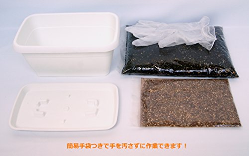 セット内容:プランター(本体・皿)、培養土、表土のカバー材、簡易手袋、使い方ガイド