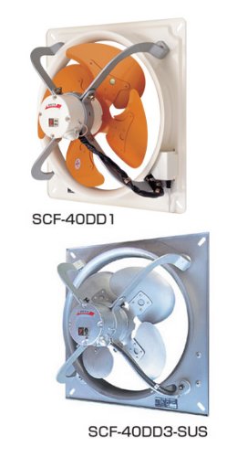 最新鋭の技術・風量型換気扇では換気しにくいガスや、工場や作業場はもちろん集会所や店舗などでも威力を発揮。