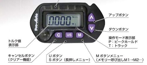| 操作モード | ピークホールドモード(作業中の最大トルク値を表示、保持し本体に測定履歴を保存する事も出来ます。) | |||||||