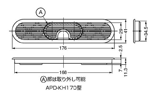 スガツネ工業 ランプ印 プラスチッキ空気孔 APD-KH型 配線孔付オーバルタイプ APD-KH170-BL