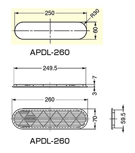 スガツネ工業 ランプ印 プラスチック空気孔 オーバルタイプAPDL-260型 APDL-260I