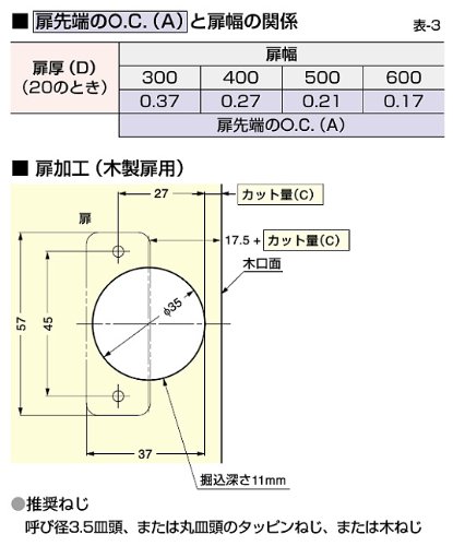 - 推奨ねじ:呼び径3.5皿頭、または丸皿頭のタッピンねじまたは、木ねじ