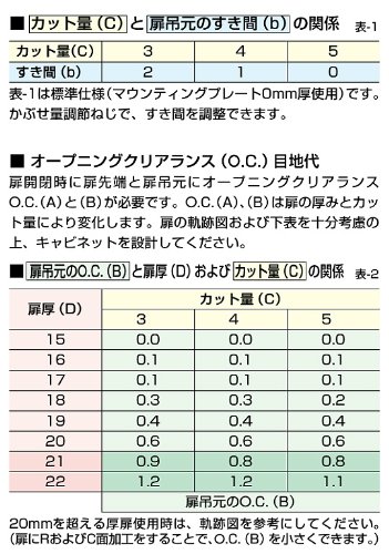 ●【用途】家具の開き扉用丁番。【機能・特徴】扉が常に開く方向に力が働きます。別売のプッシュラッチ(推奨MC-37F)と併用すると、つまみ・ハンドルなしで扉を開くプッシュオープン仕様となります。RoHS指令に対応しています。【材質】鋼。【注意事項】取り付けには別売のマウンティングプレートが必要です。