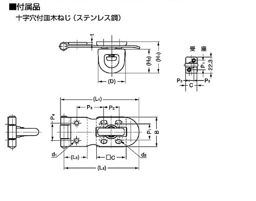 - L1/L2/L3/B/P1/P2/P3/P4/P5/H1/H2/C/D/tサイズ(mm):50/47/13/22.3/13/9/16/12/-/22/17.9/18.3/17.7/1.2