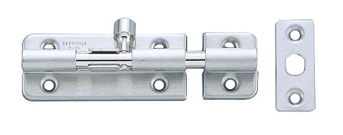 ●【用途】ドア、扉などの施錠。【機能・特徴】受座は2種類付いています。●付属品:十字穴付皿木ねじ2.7×16(ステンレス鋼)。【材質】本体・受座:ステンレス鋼(SUS304)。●落し棒・つまみ:黄銅(真鍮)。
