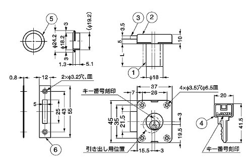 ●【用途】施錠。【機能・特徴】面付タイプなので、かぶせ扉などに適しています。ワードローブ用ロックとしても適しています。解錠時にキーが抜けないつまみ兼用型です(施錠時にキーは抜けます)。鍵違い数は156通りです。トータルロック3310シリーズの中で同じキー番号をご指定いただくとキーの共通使用ができます。●付属品:十字穴付皿木ねじ3.1×20・2.1×10(ステンレス鋼)。【材質】本体・シリンダー:黄銅(真鍮)。●デッドボルト・キー・リング:黄銅(真鍮)。●受座:ステンレス鋼(SUS304)。【注意事項】ご使用の際、キーに大きな負荷が掛かると変形や作動に支障が出る場合がありますのでご注意ください。