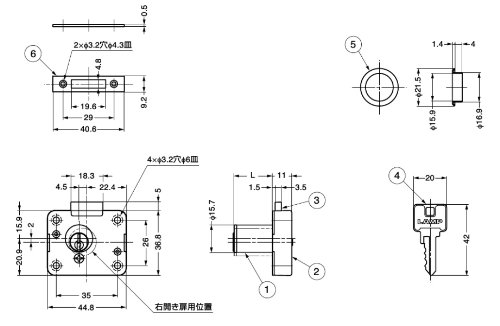 スガツネ工業 ランプ印 面付シリンダー錠 2650型(別番) 2650-16-DN-B