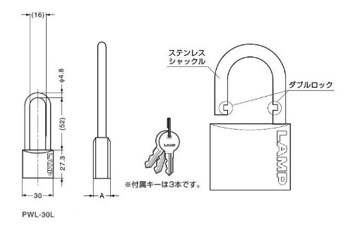 スガツネ工業 ランプ印 ダブルロック南京錠 PWL型 PWL-30L-B