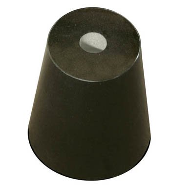 住宅の基礎・柱の下の束石・沓石。上面150mm×下面210×高さ200mm。50×50mm(深さ40mm)のホゾ穴。中心に20mm丸穴貫通