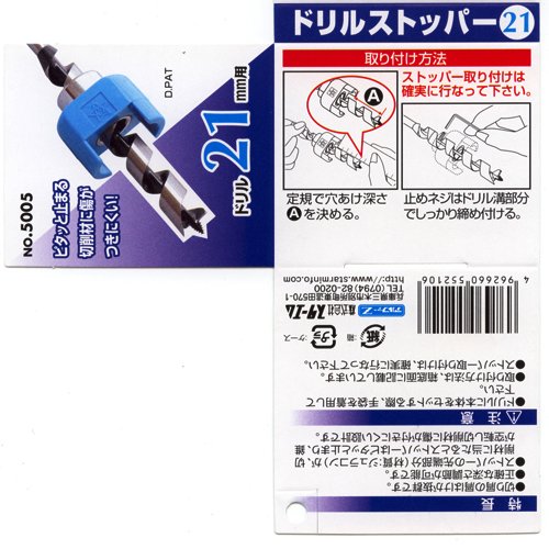 ●【用途】穴あけ深さを一定にできるドリル21mm用ストッパー。【特徴・機能】木工用・鉄工用・コンクリート用ドリルに取付け可能です。止めたいところでピタリと止まります。樹脂製なので被削材に傷がつきにくくなっています。【注意事項】振動ドリルに取付けて使用しないで下さい。