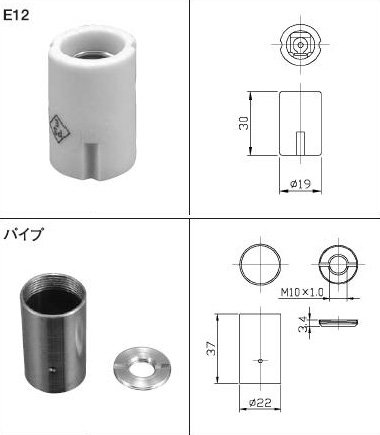 青山電陶 E12ソケット(パイプ用) 白 セト製 E12口金用 ソケットパイプ付き E12-02