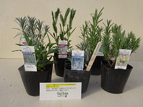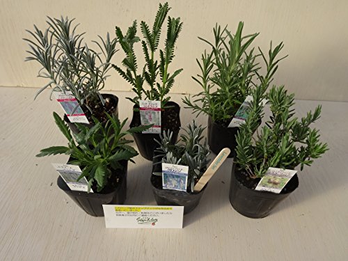 イングリッシュラベンダーやフレンチラベンダーなどのセットです。 ラベンダーには鎮痛や精神安定、防虫、殺菌などに効果があるとされます。アロマオイルには、リラックスと体の痛みを和らげる効果があり、安眠のハーブと言われています。 苗はお選びいただけませんが、一番良い状態の ハーブを選んで6種類セットにしてお届けいたします。 ★写真は一例です。