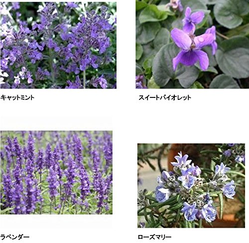 ブルーやパープルの花の咲くハーブを集めました。 苗はお選びいただけませんが、 12種類のハーブの中から一番良い状態の ハーブを選んで6本セットにしてお届けいたします。 ※セットの写真は、出荷時のハーブの一例です。