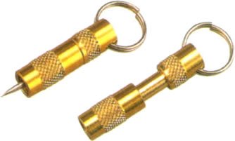 美しいブラス(真鍮)製のガスカートリッジ用穴あけ器。先端のカバーナットを回転させて針を露出し、カートリッジに穴を開けてガス抜きをする。