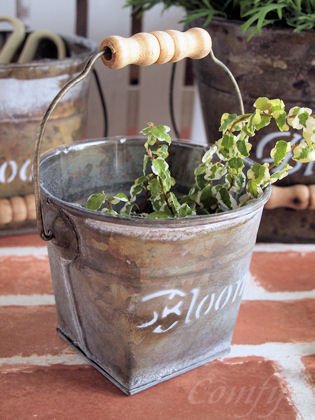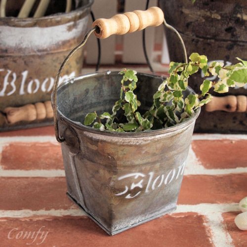 ガーデン雑貨 バケツ S ブリキ缶 ブルーム アンティーク調 ガーデニング雑貨 フェンス 植木鉢