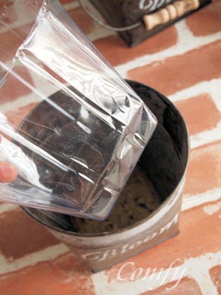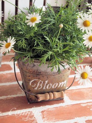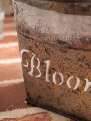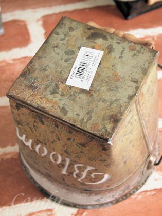 - 味わい深いアンティーク風のブリキポットは植物を一層引き立てます。