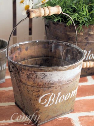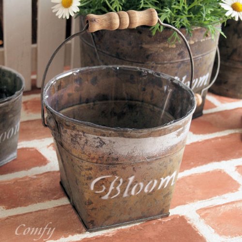 ガーデン雑貨 バケツ M ブリキ缶 ブルーム アンティーク調 ガーデニング雑貨 フェンス 植木鉢