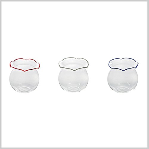 ミニ金魚鉢3個セット 約10cmの小さな金魚鉢風のガラス容器が3個セットになっています。本物の金魚には小さいので、小物入れや一輪挿しなど可愛く使ってください。
