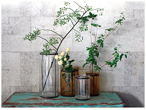 スタイリッシュな黒いアイアンのラインが印象的なフラワーベース。 泡の入ったレトロ調のガラスは花を飾る花瓶だけでなく、アンティークの小物にも似合いそうな落ち着いた雰囲気。