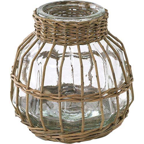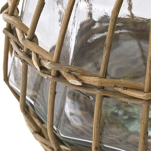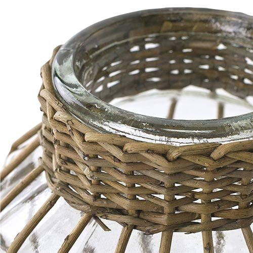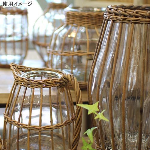 ガラスの形状にぴったり合わせて柳のカゴを編み込み、形を作り出したフラワーベースです。