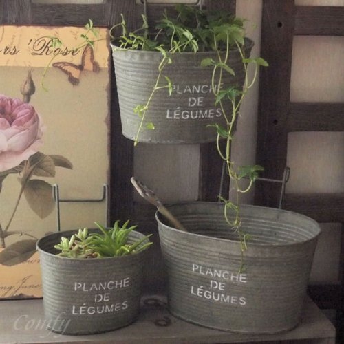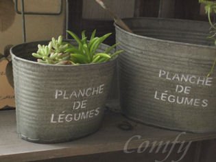 味わい深いアンティーク風のブリキポットは植物を一層引き立てます。 ハイセンスなガーデンデザインには、お洒落な小物が絶対に必要ですよね! スタイリッシュなイングリッシュガーデン、ナチュラルなカントリーガーデンにしっくりとなじみます。 室内のインテリアとして、小物入れとして使用してもおしゃれです! 使い込むうちに、ブリキ特有のシャビー感が出てきます。 ガーデニング好きのお友達にプレゼントしても、喜ばれそうですね! 心のこもった手作り商品のため、ひとつひとつサイズやアイアンの曲り具合が違います。 「PLANCHE」は、菜園のこと。育てながら飾るのにぴったりですね! サイズ:L、W215×d165(140)×H185(125)mm M、w185×d145(120)×H175(110)mm S、w145×d120(100)×H150(100)mm 素材:ブリキ