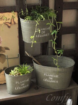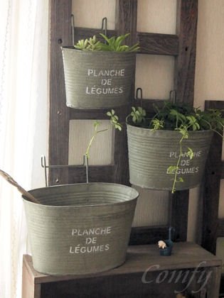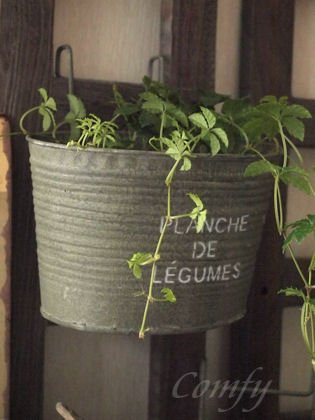 - 味わい深いアンティーク風のブリキポットは植物を一層引き立てます。