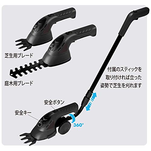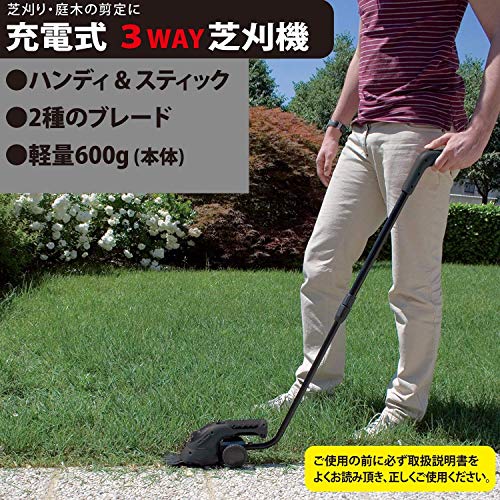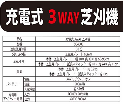 スマイル 3WAY 芝刈機 【1年保証付き】 コードレス 充電式 (ハンディ・伸縮ポール・庭木用) 誤作動防止ロック付き 軽量1.0kg 刈込幅80mm SG4800