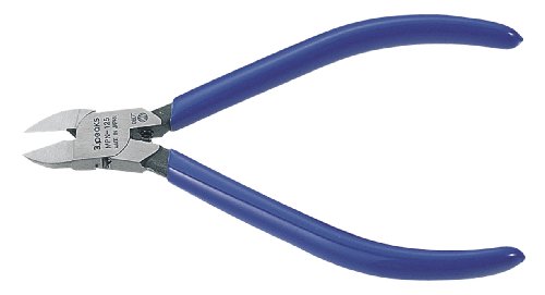 ●小型の頭部で刃角度22度、全長125mmで、細かく入り組んだ作業に対応します。●プラスチック専用のため、金属の切断は不可です。●パッケージサイズ/縦:178mm横:70mm高さ:15mm●パッケージ重量:80g●生産国:日本●材質:材料:S58C 柄部:ビニールグリップ ●呼び寸法:125mm●用途:プラモデルの製作・一般プラスチック成形品のゲートの切断●切断能力:樹脂3.0mm●硬さ:54~60HRC(刃部)●重量:65g●全長:125mm●幅:50mm●刃面形状:フラット型(平面)●警告:グリップは絶縁体ではありません。電源を切ってご使用ください。●注意:プラスチック専用ですので、プラスチック以外は切断しないでください。切断能力以上のプラスチックは切断しないでください。太い線材は刃の中心より根元部で切断してください。やわらかく細い線材は刃先で切断してください。切断能力は、刃の中心部での能力となります。