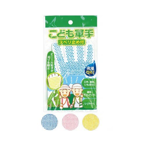 - ○滑り止め付きの、子供用の軍手です。 手のひらの面にビニール粒子があり、滑りを防止します。 洗濯することができます。 工作やいもほり、園芸、遠足などにオススメです。